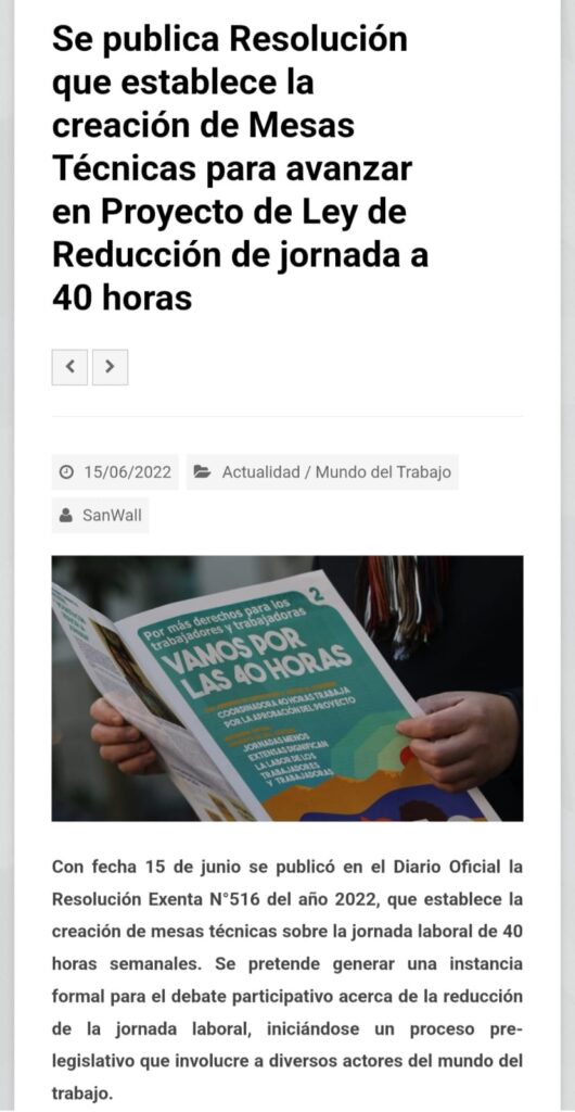 Se publica Resolución que establece la creación de Mesas Técnicas para avanzar en Proyecto de Ley de Reducción de jornada a 40 horas